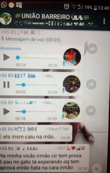Os integrantes do grupo começam a dar ordem para matar Edwirges. "Na minha visão cir (SIC) tem prova é pau no gato (SIC) tá esperando oq tem aprova (SIC) então bala na cara irmão", diz um dos integrantes do grupo.